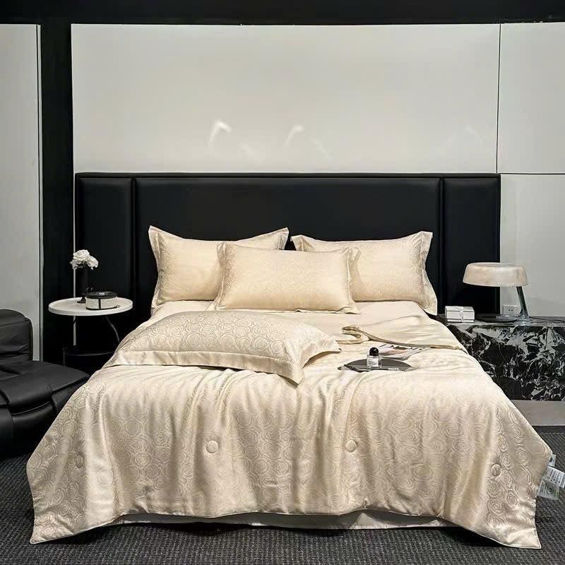 B32 - Bộ Chăn Ga Gối Lụa Tencel 40s 4 Món Be
