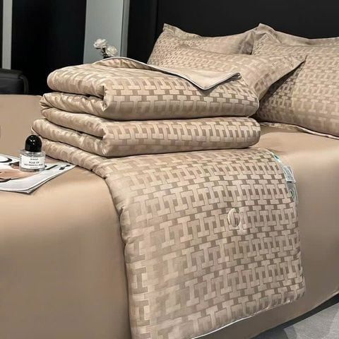B33 - Bộ Chăn Ga Gối Lụa Tencel 40s 4 Món Nâu