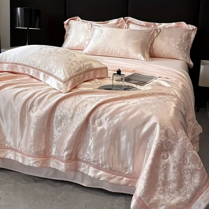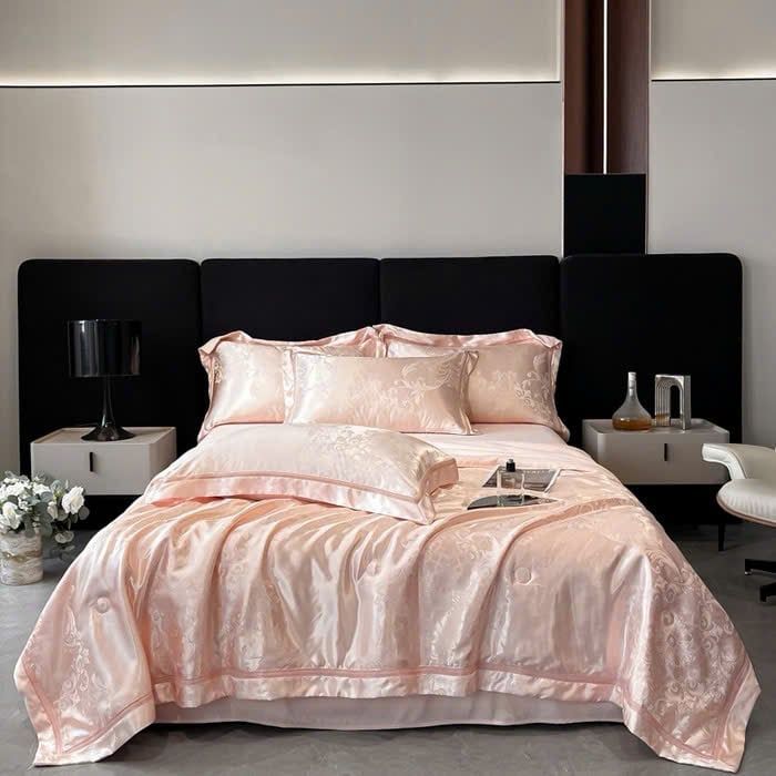 B66 - Bộ Chăn Ga Gối Lụa Gấm 60s 4 Món Hồng