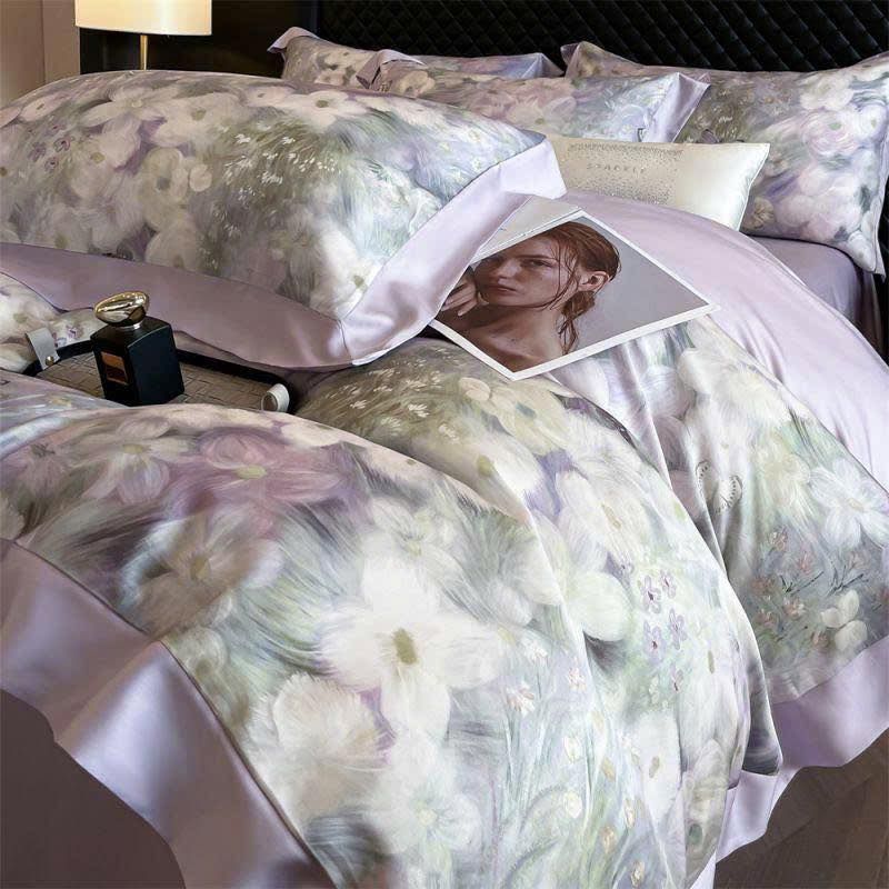 B77 - Bộ Chăn Ga Gối Lụa Thái 4 Món Huệ Tím
