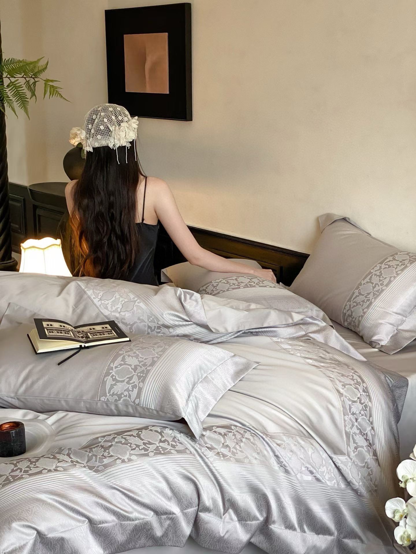 S19 - Bộ Chăn Ga Gối Lụa 120s Dệt Hoa Chìm Luxury Silk Ánh Bạc