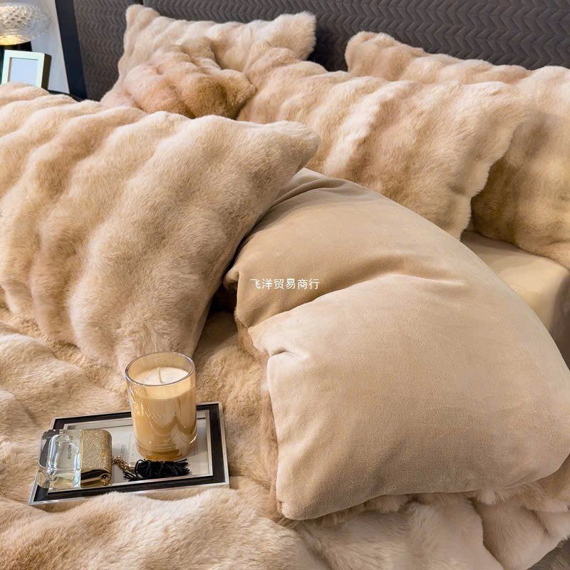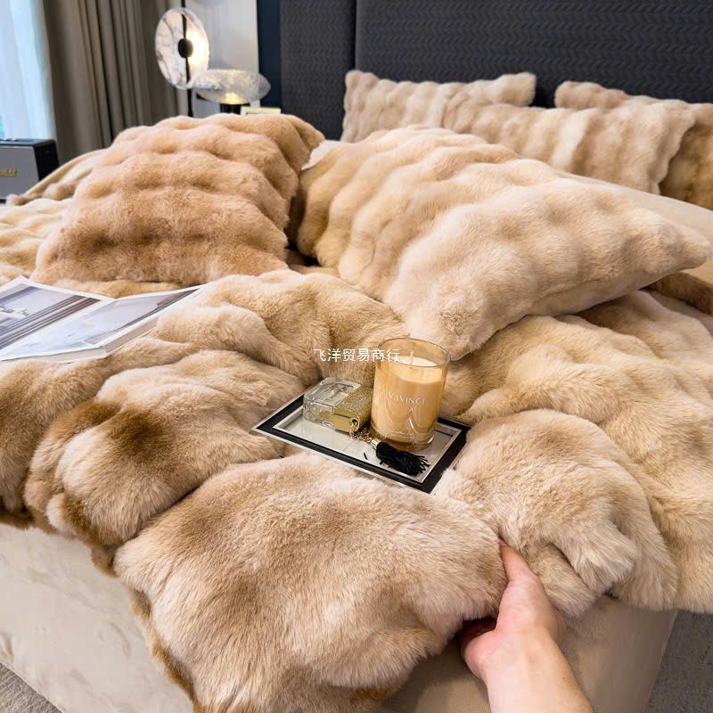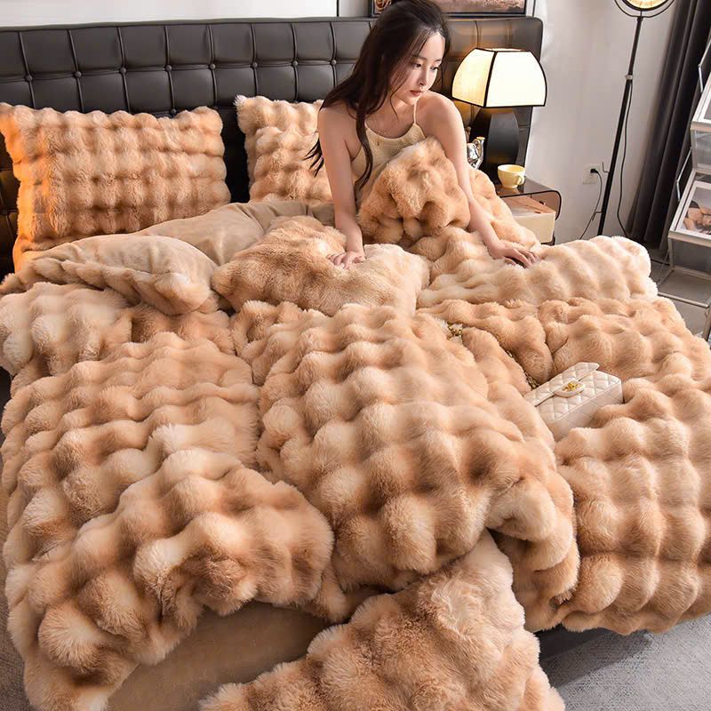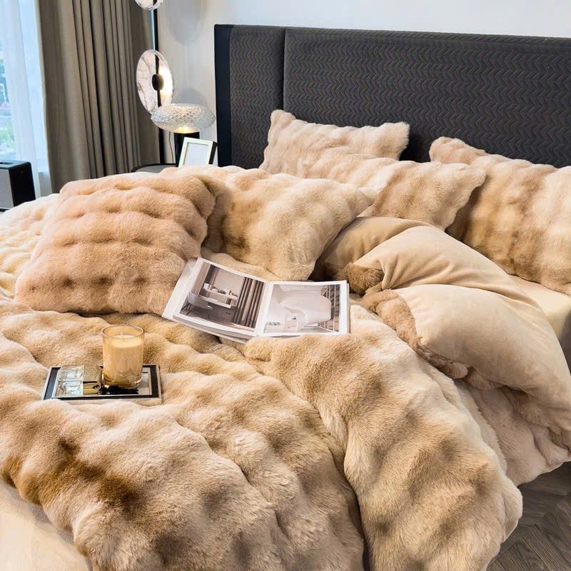 Bộ Chăn Ga Gối Nỉ Lông Cáo Nâu Loang