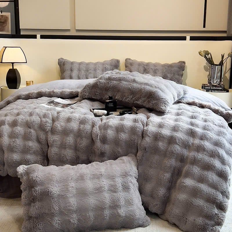 Bộ Chăn Ga Gối Nỉ Lông Cáo Xám Nhạt