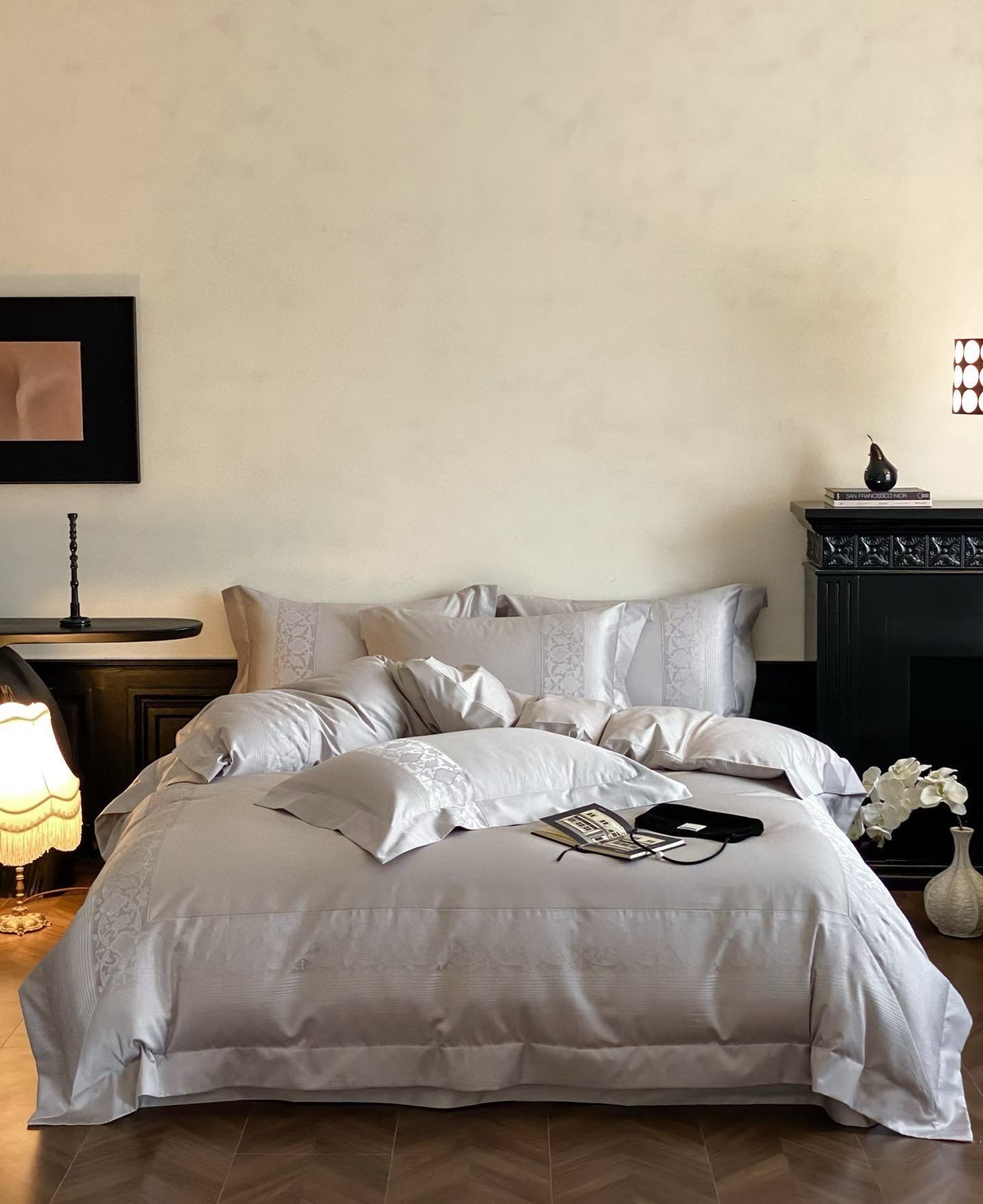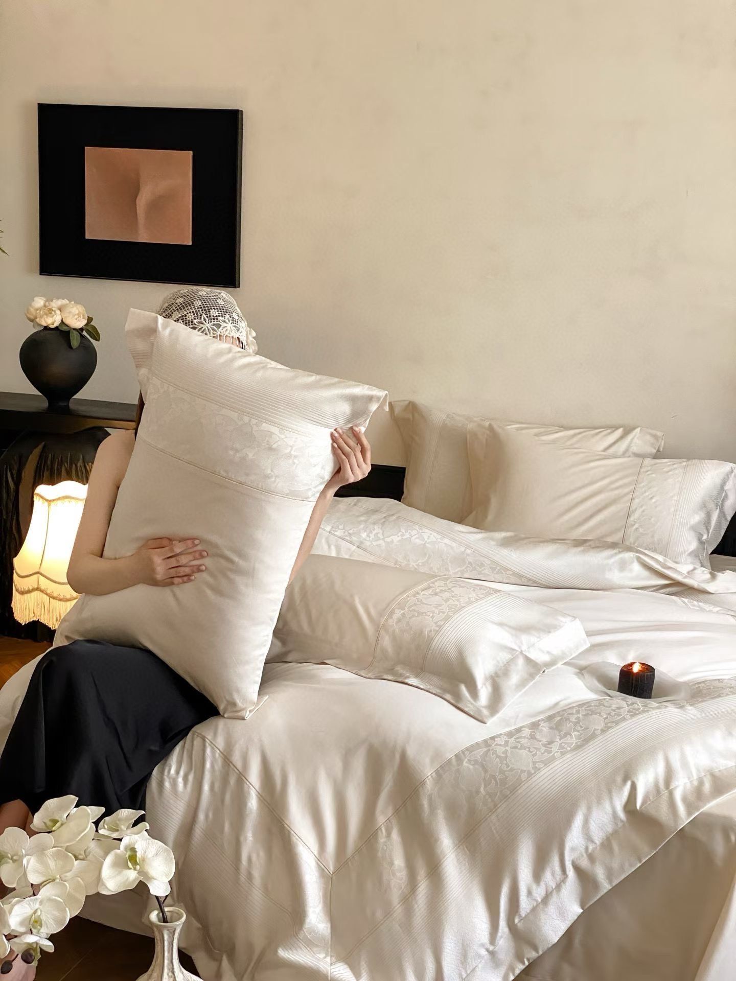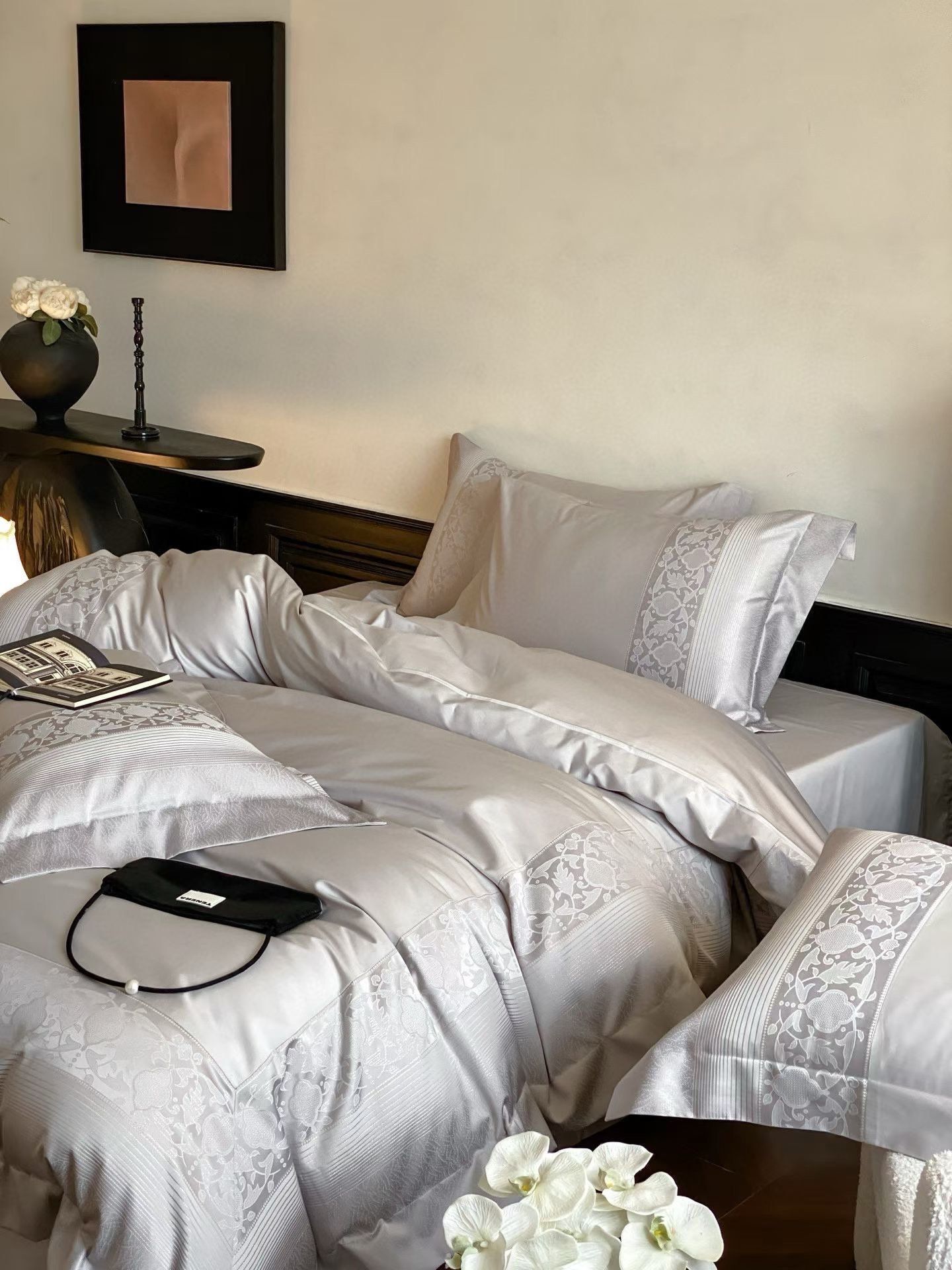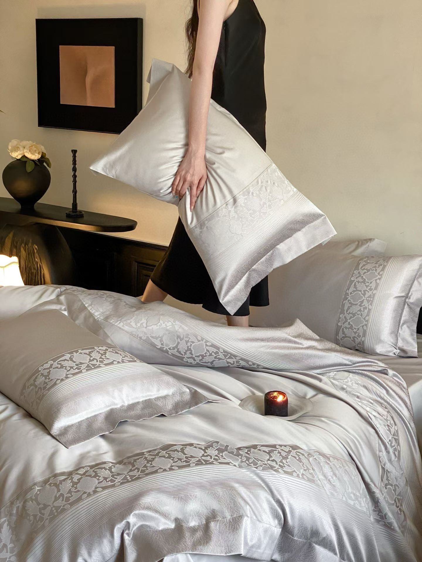 S07 - Bộ Chăn Ga Gối Lụa 120s Dệt Hoa Chìm Luxury Silk