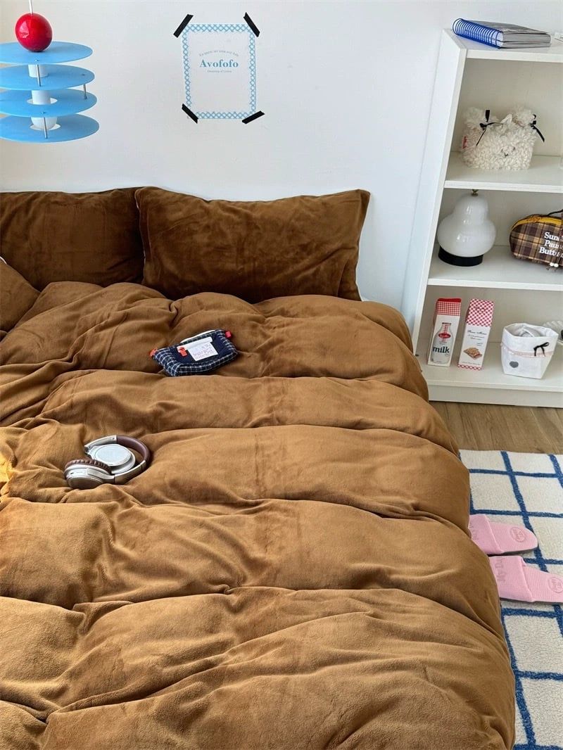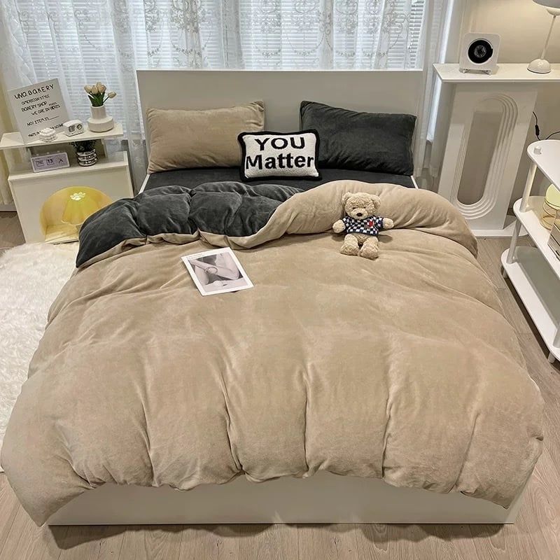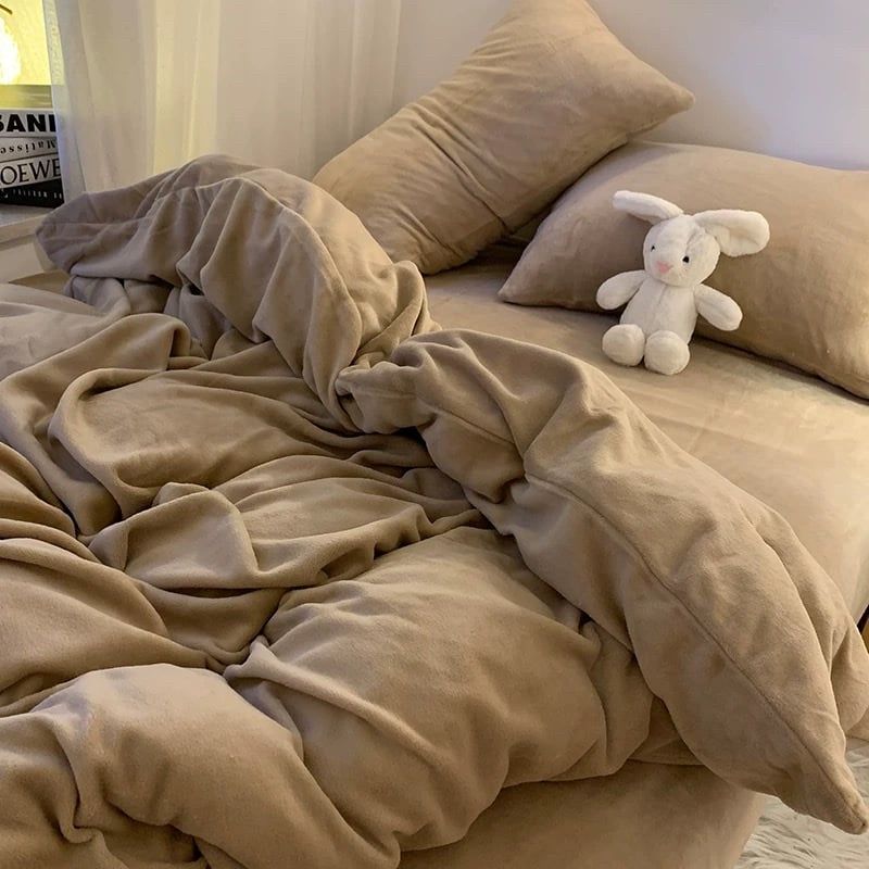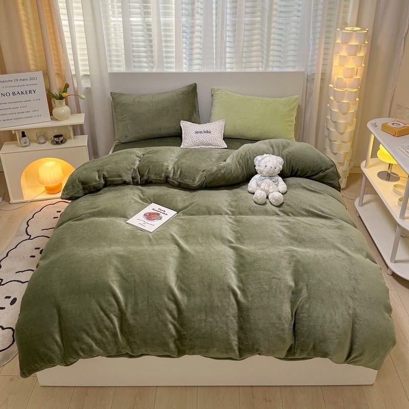 S11 - Bộ Chăn Ga Gối Nỉ Nhung Tuyết Sữa 2025